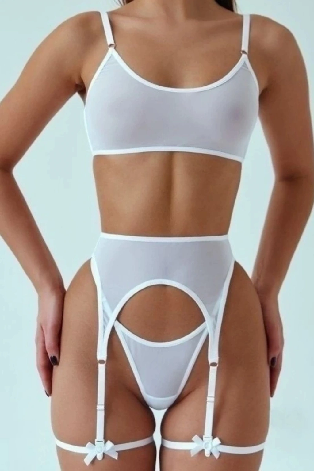 Beyaz Eller Kelepçeli Jartiyer Takım TM8139