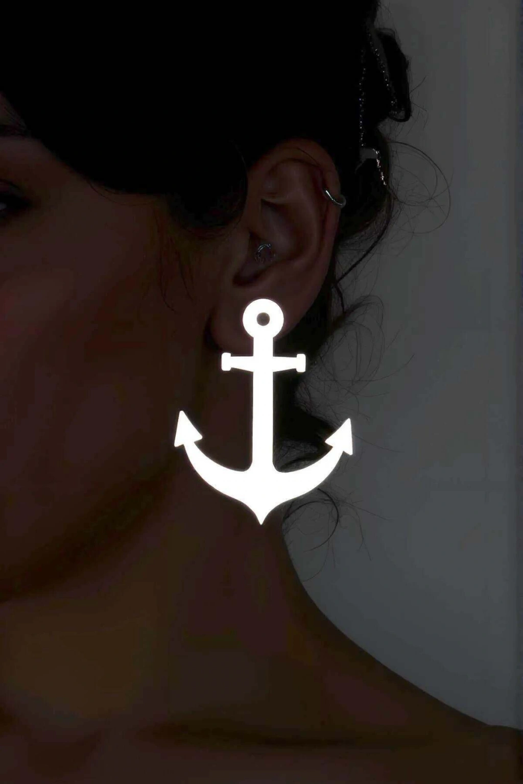 Beyaz Reflektörlü Çapa Küpe, Şık Lazer Kesim Küpe - APBJ020