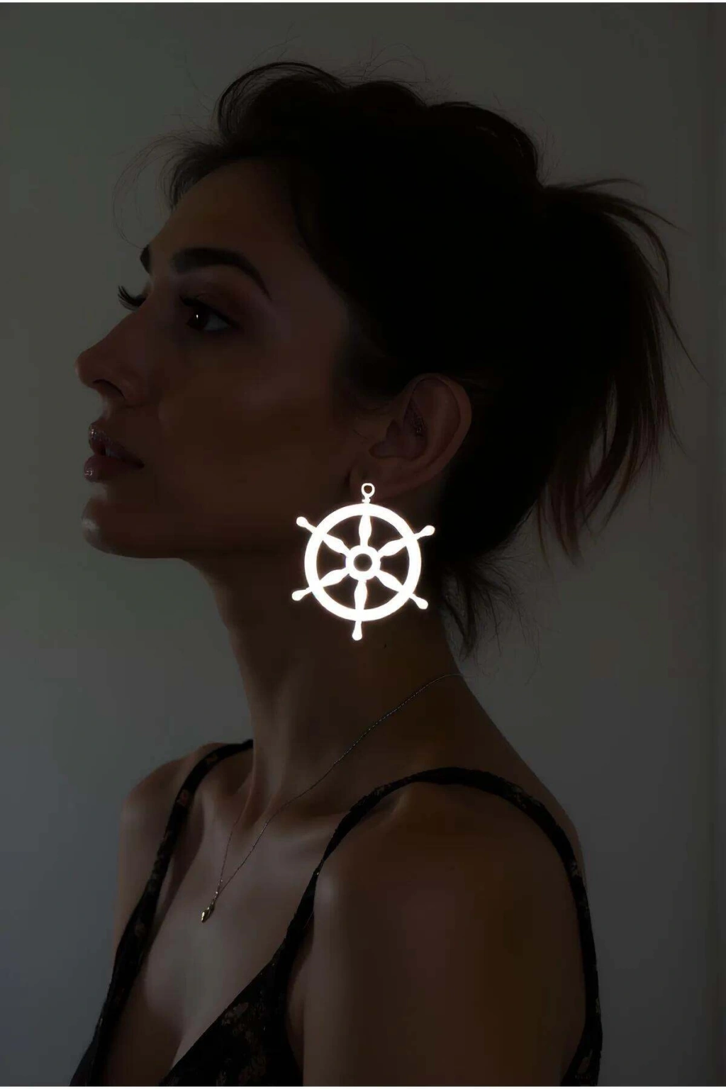 Beyaz Reflektörlü Dümen Küpe, Şık Lazer Kesim Küpe - APBJ021