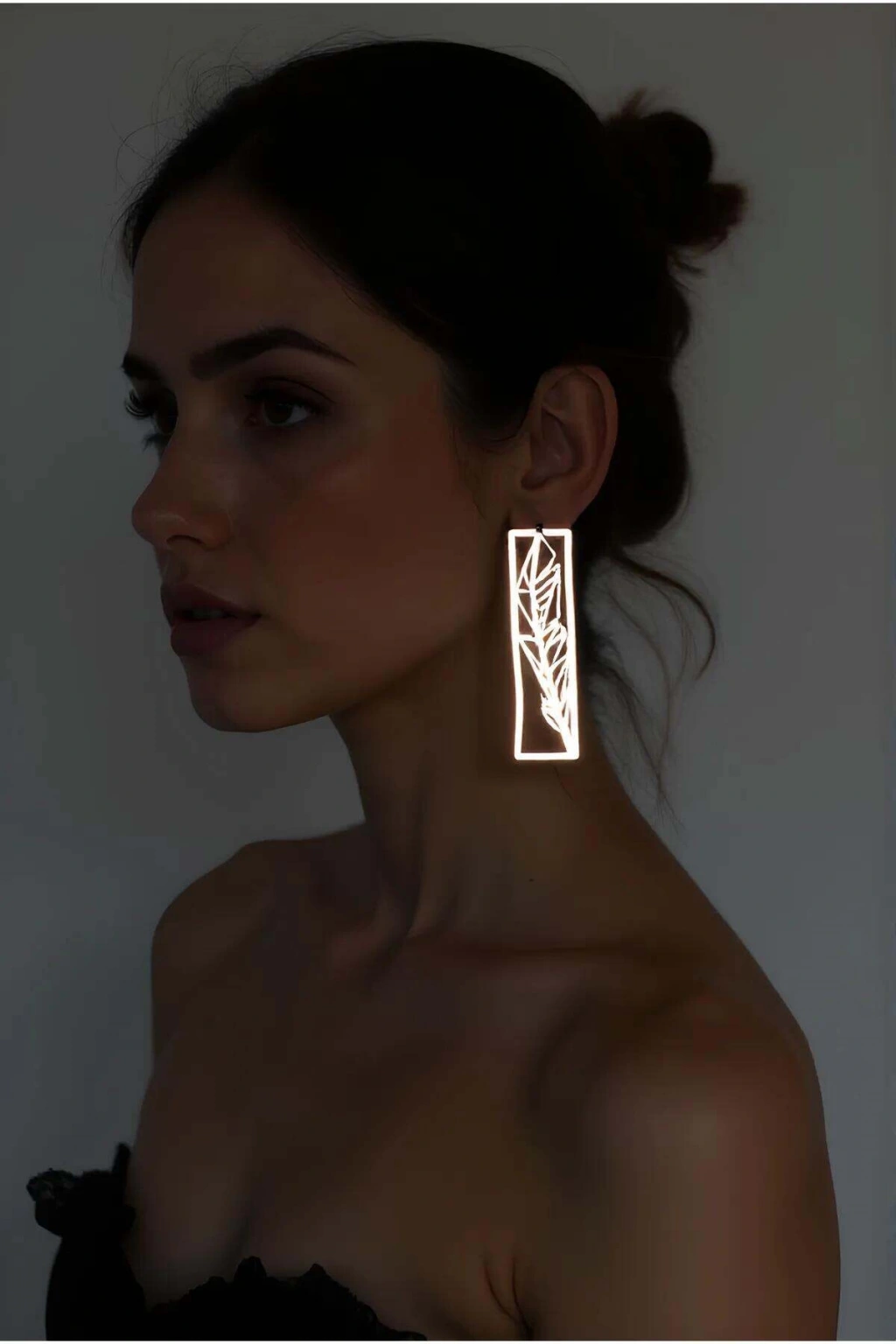 Beyaz Reflektörlü Kuş Tüyü Küpe, BohemTasarım Lazer Kesim Küpe - APBJ025