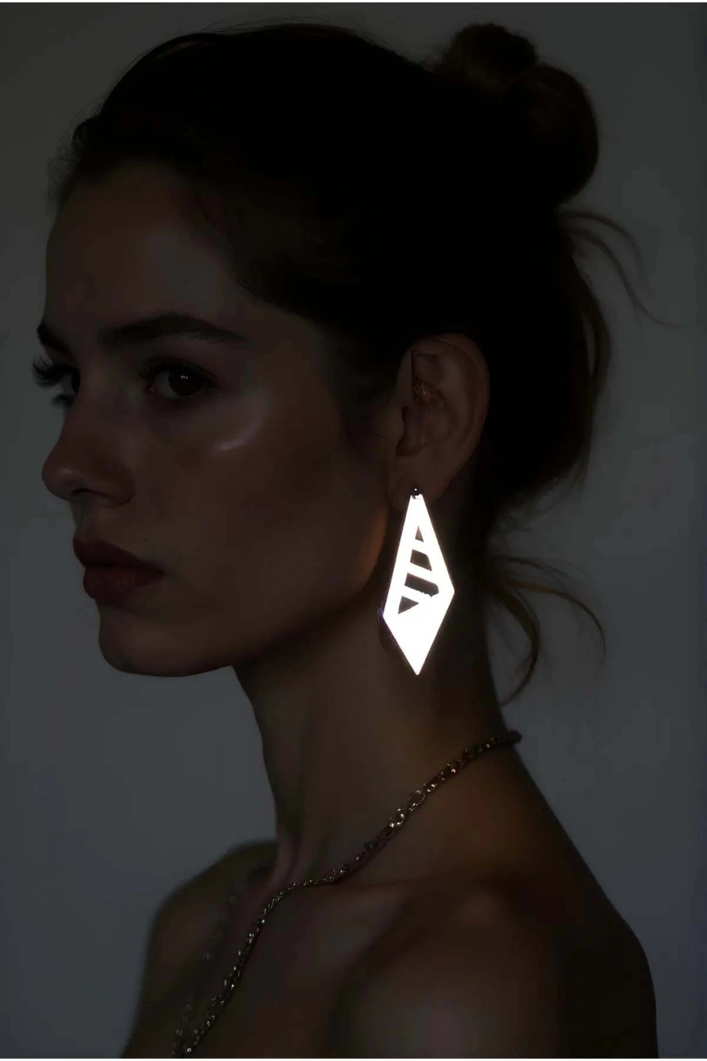 Beyaz Reflektörlü Prizma Küpe, Şık Lazer Kesim Küpe - APBJ011