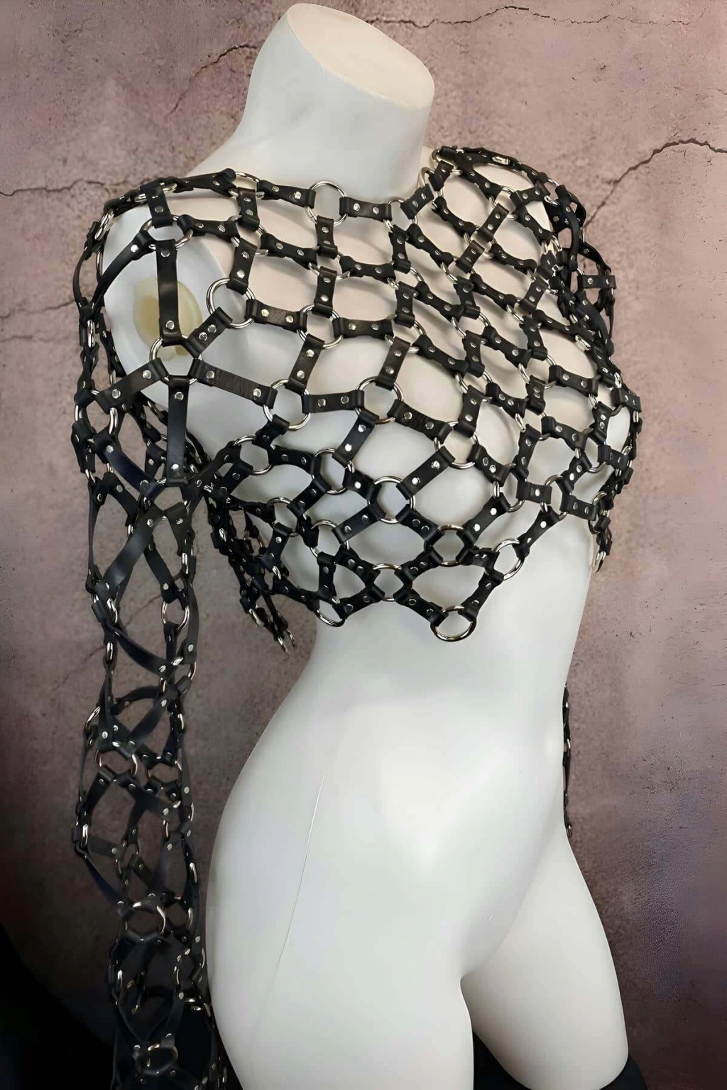Çapraz Tasarım Uzun Kollu Deri Crop Bağlamalı Büstiyer Harness- APFT1076