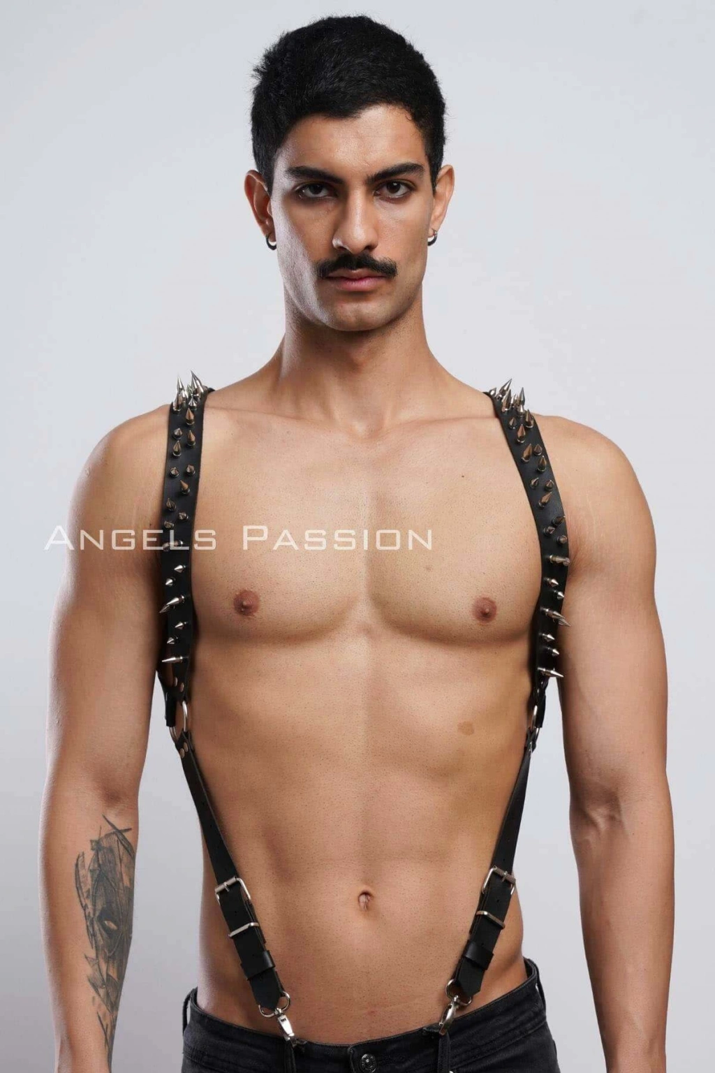 Çivi Detaylı Erkek Göğüs Harness, Erkek Clubwear, Deri Erkek Harness - APFTM203