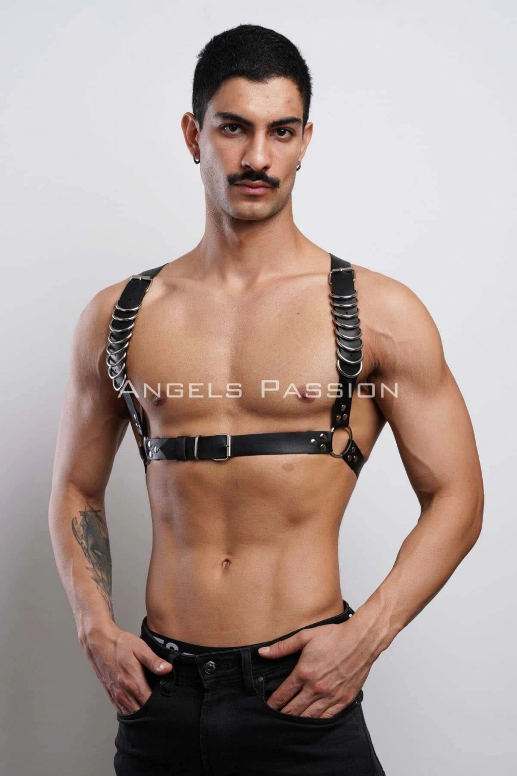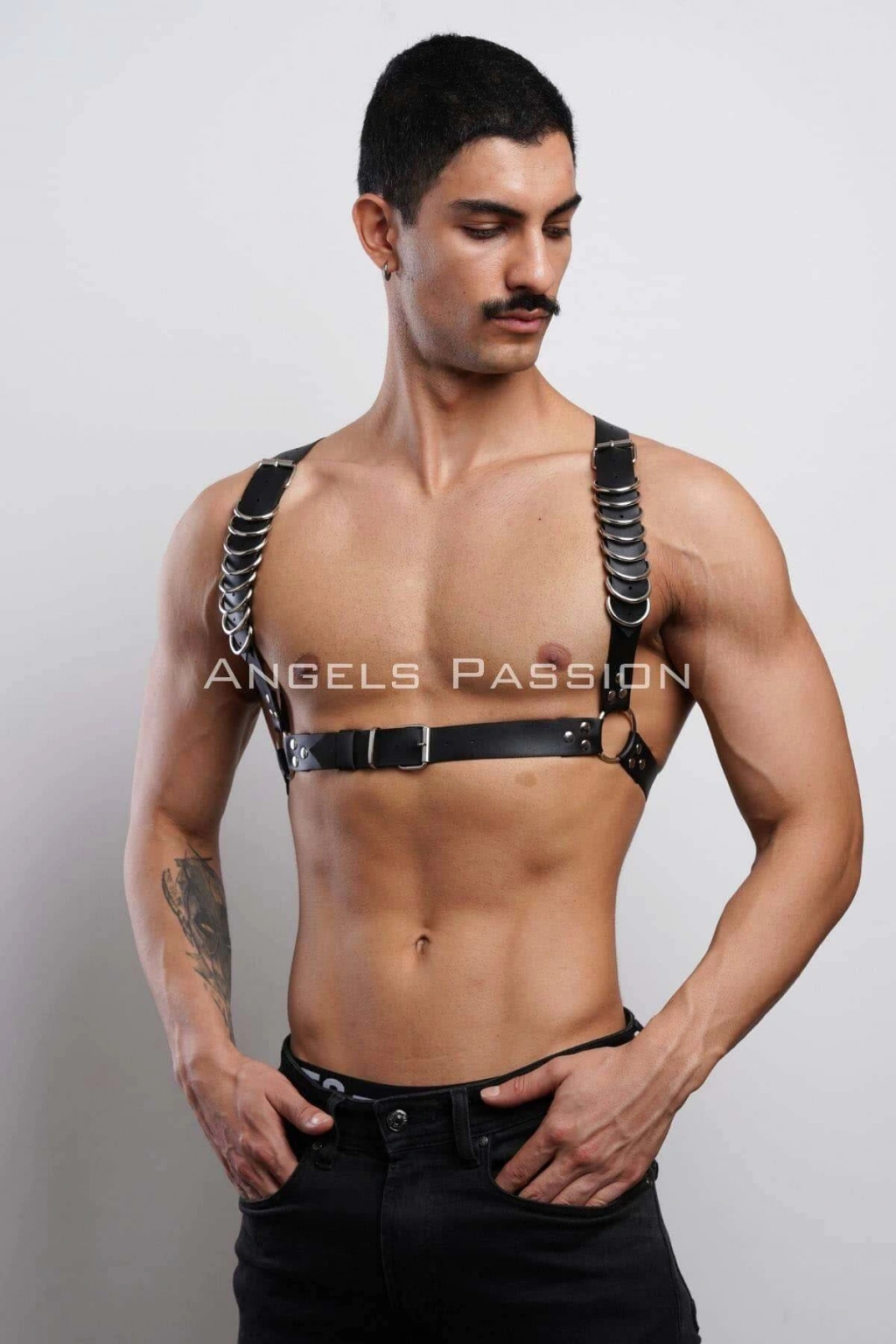 D Halka Detaylı Şık Erkek Göğüs Harness, Erkek Deri T-Shirt Aksesuar - APFTM92