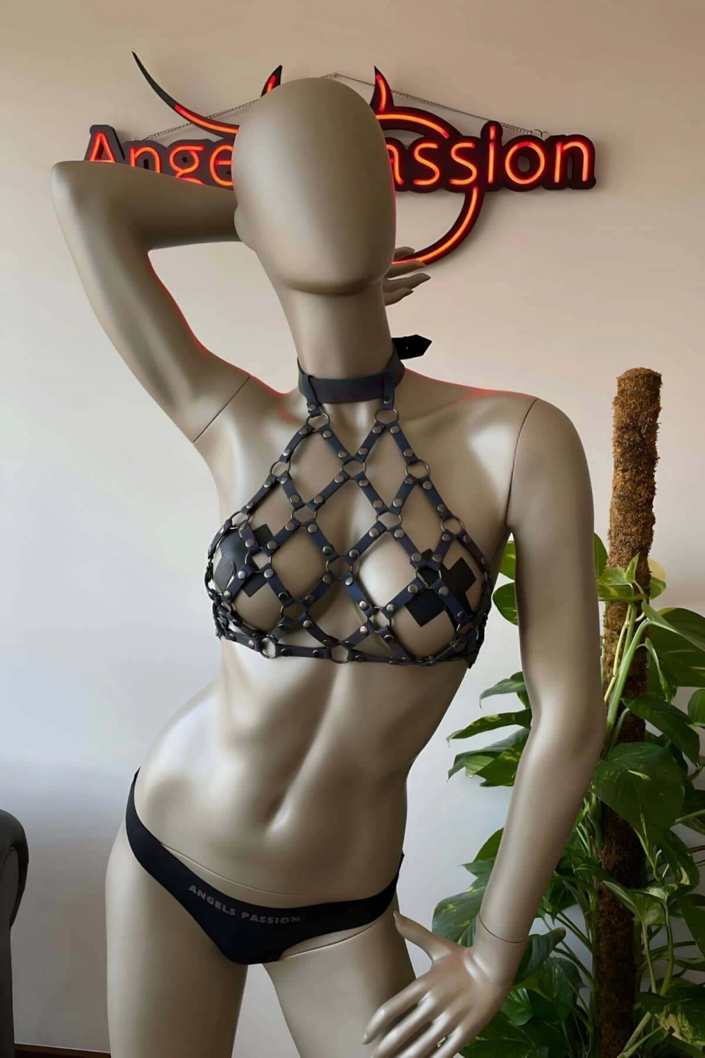 Dünya’da ilk kez Angels Passion markası tarafından üretilen Dansçı Kıyafetleri - Karanlıkta Işıkla Parlayan Büstiyer isimli Reflektörlü Harness ürünümüz, ışık vurduğunda parlayan özel üretim reflektörlü malzemeden hazırlanmıştır.