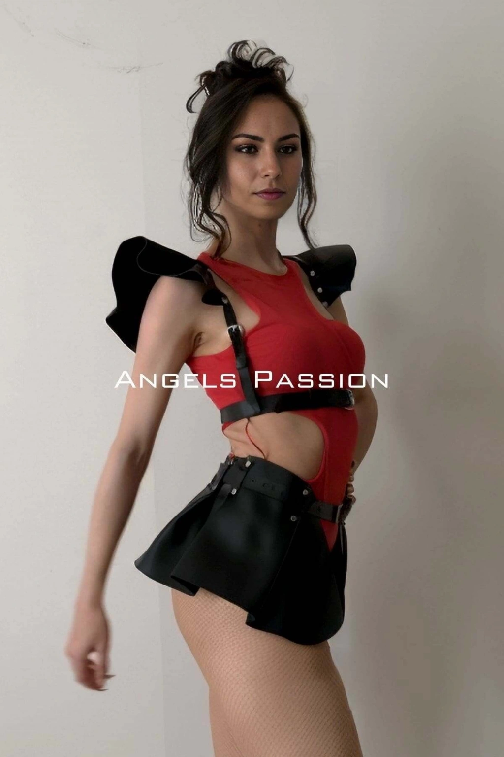 Deri Elbise, Deri Takım Harness Elbise, Dansçı Elbisesi, Seksi Dansçı Kostüm APFT1001