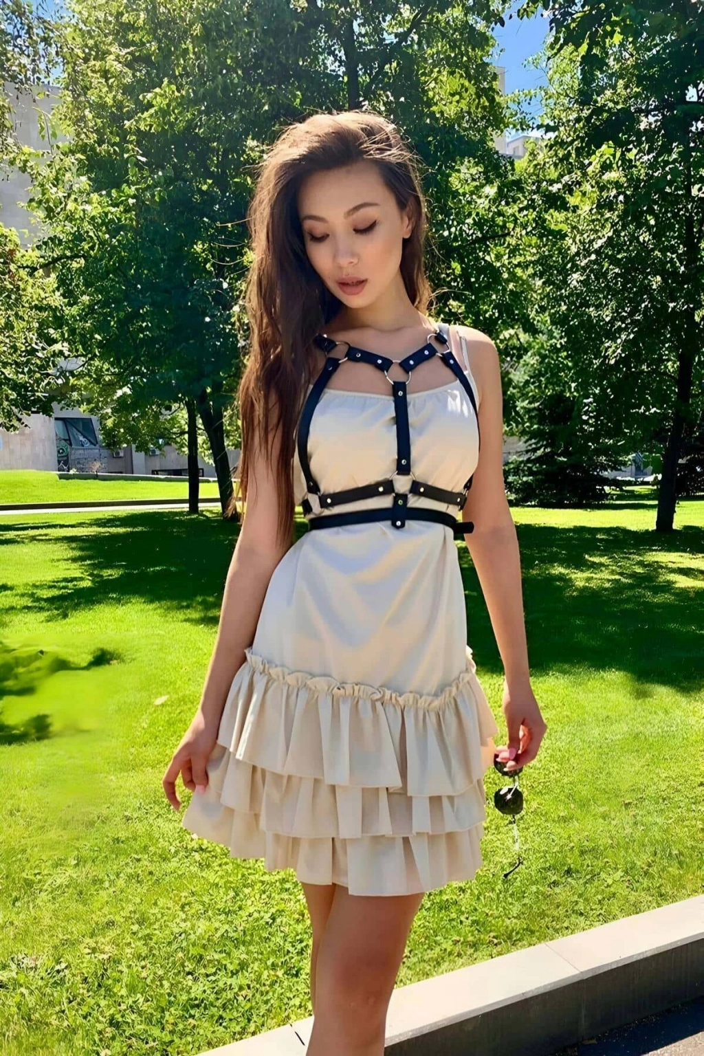 Elbise Üzeri Göğüs Detaylı Omuzdan Askılı İnce Şerit Şık Deri Kemer - APFT646