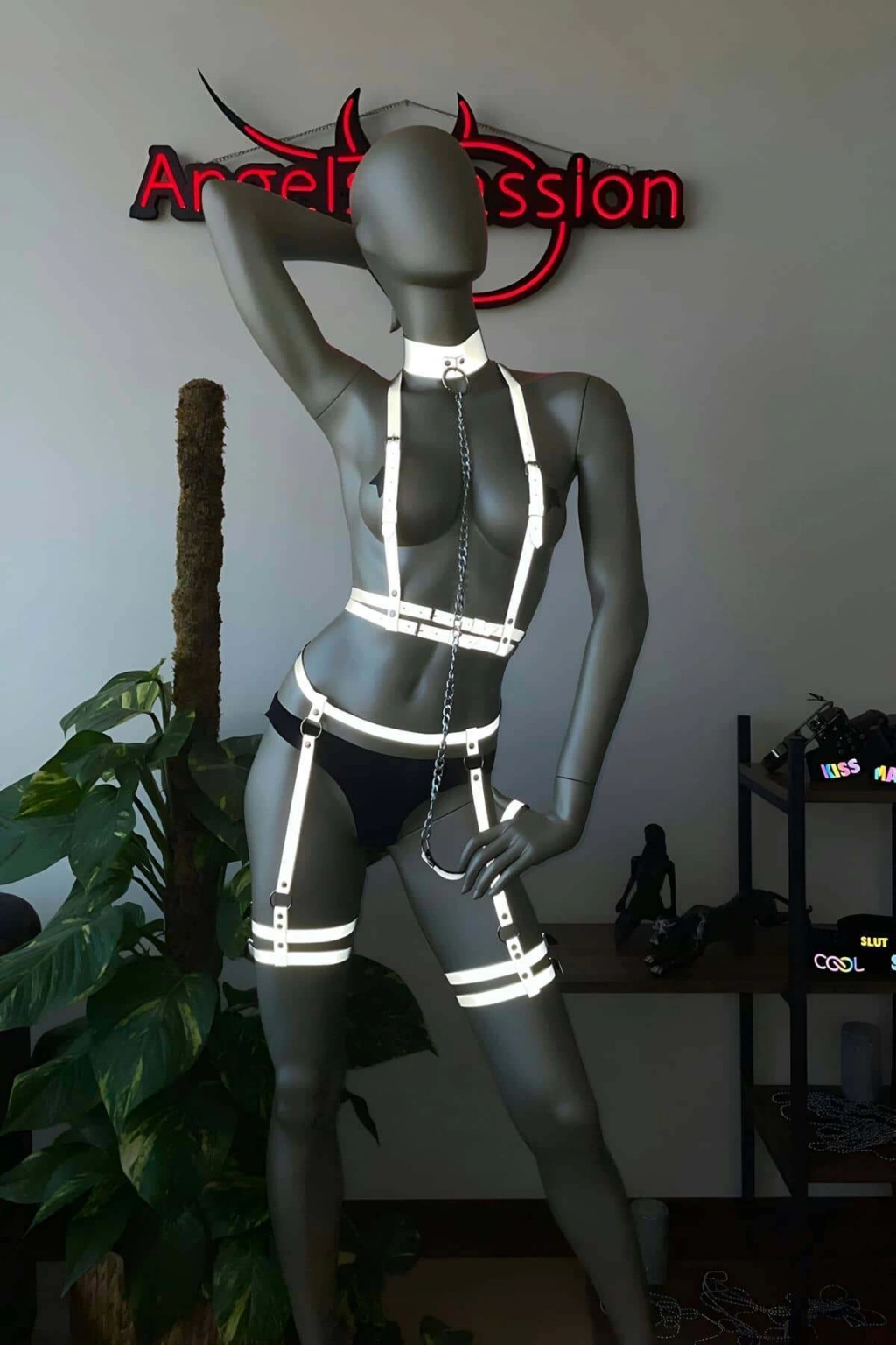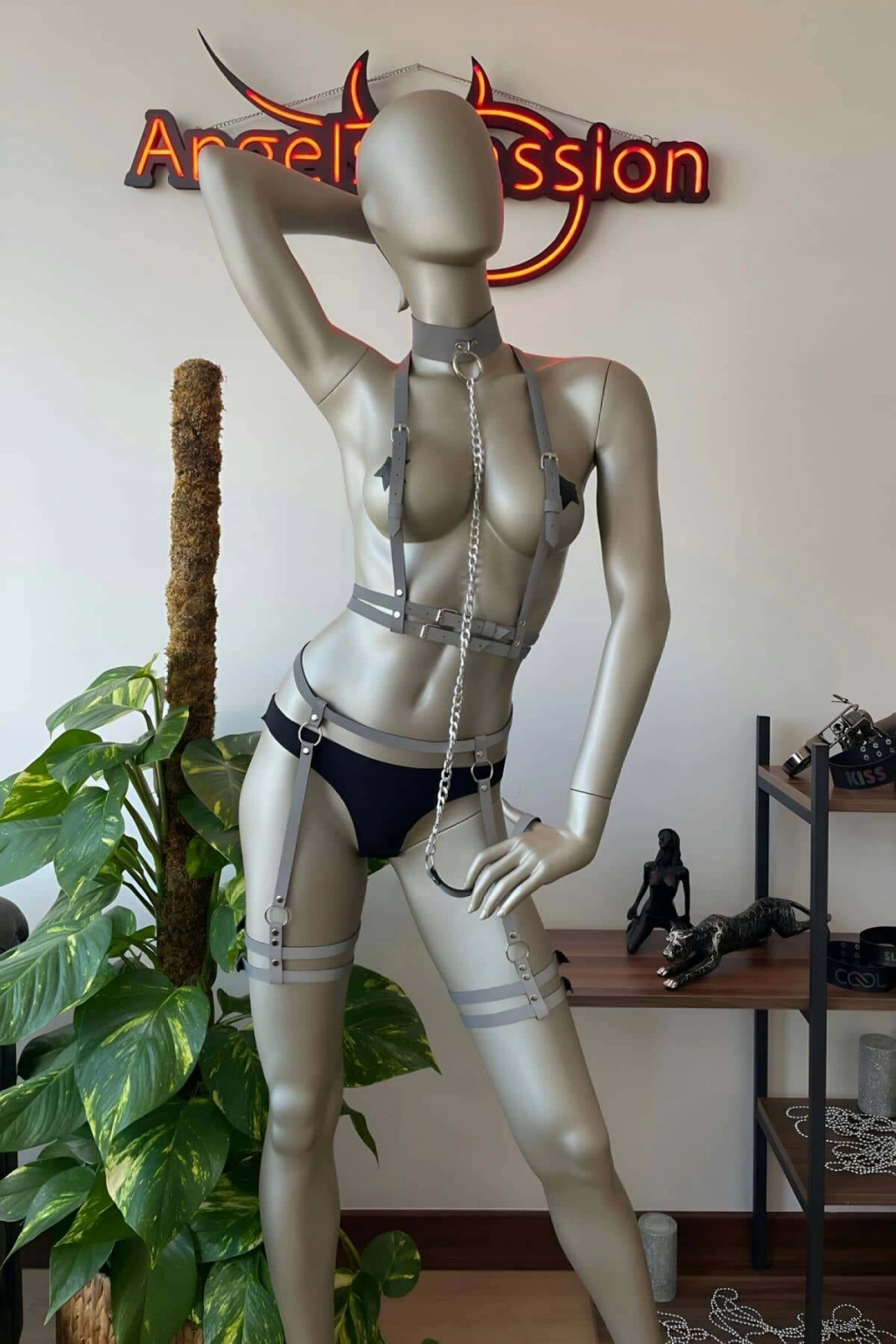 Ürün İçeriği: 3 Parça (Göğüs harness, jartiyer harness ve tasma. İç çamaşırlar ve aksesuarlar dahil değildir.)