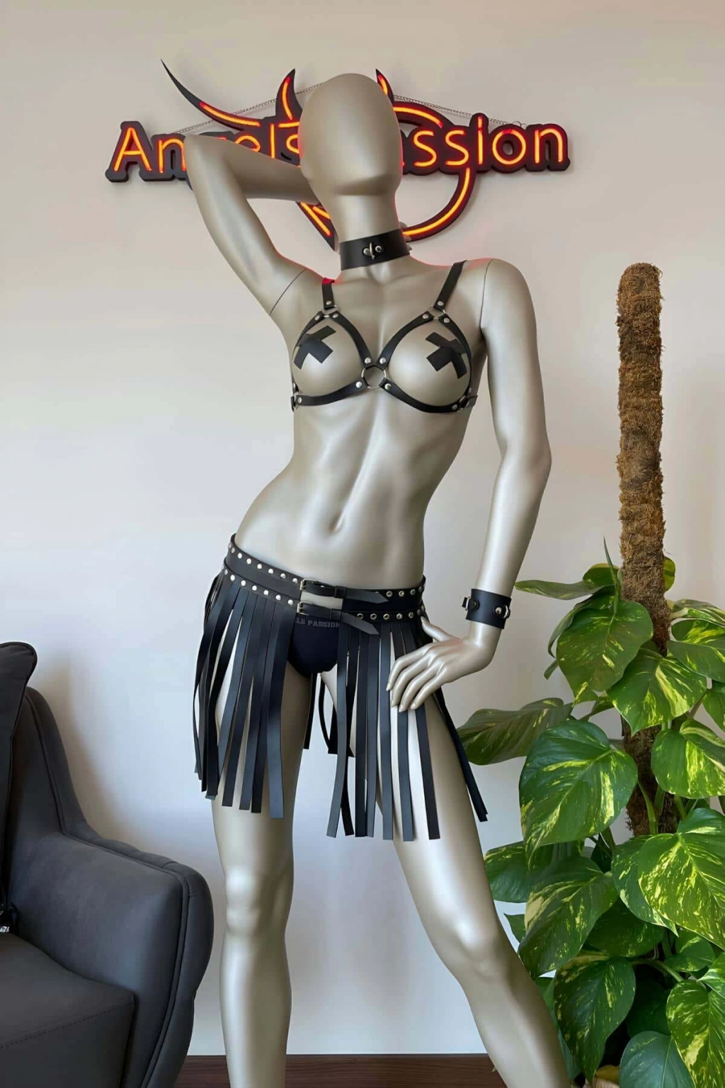 Püsküllü Etek, Deri Büstiyer ve Tasma Takım