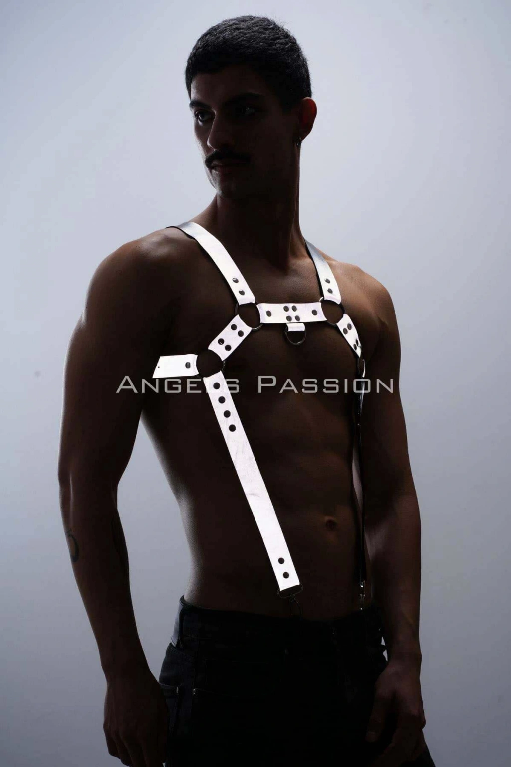 Reflektörlü (Karanlıkta Parlayan) Erkek Göğüs Harness, Reflektörlü Pantolon Askısı, Clubwear - APFTM23