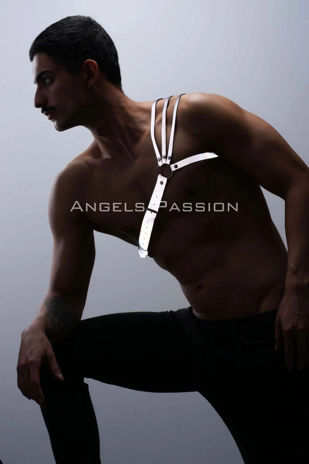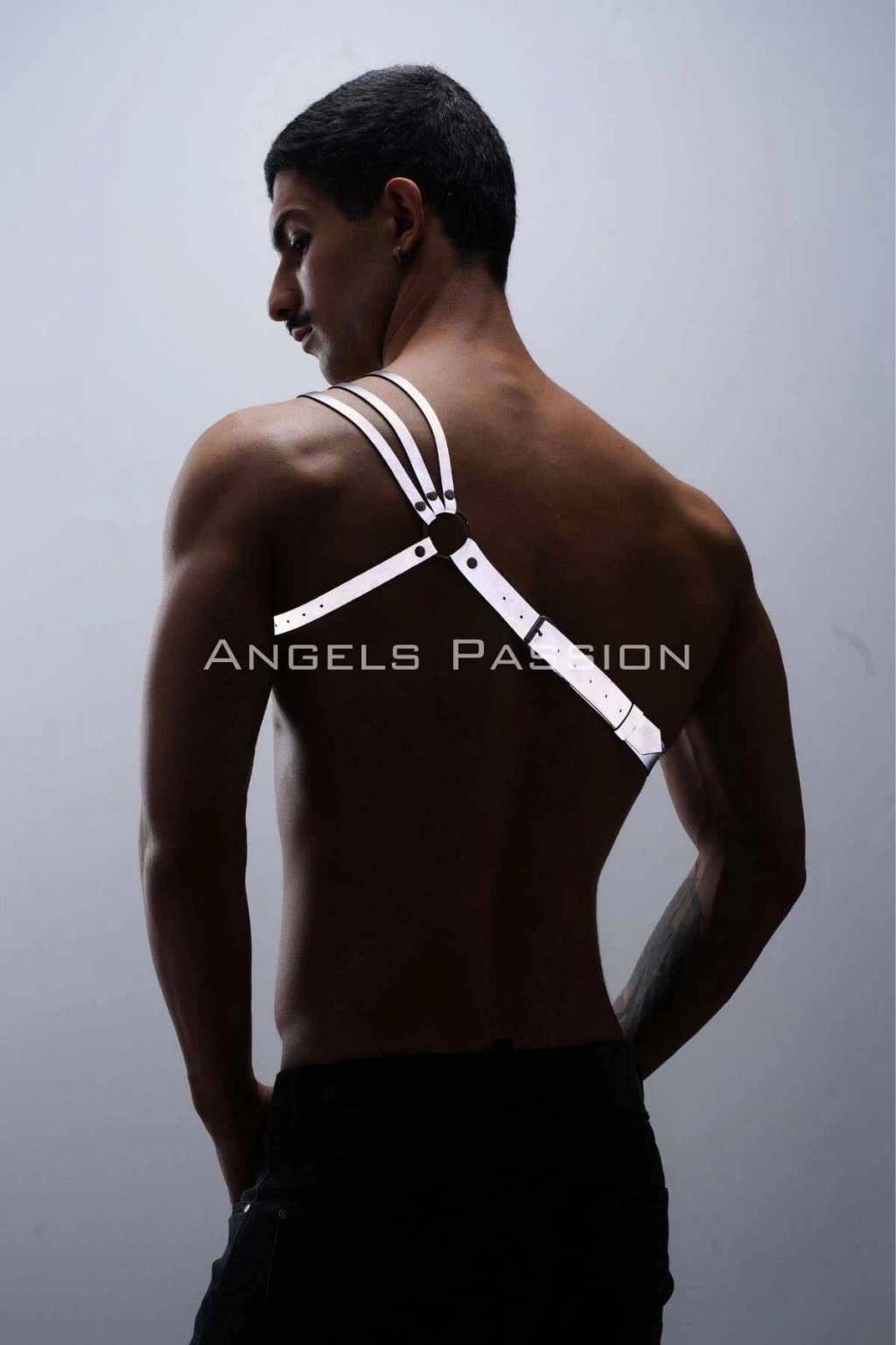 Reflektörlü (Karanlıkta Parlayan) Omuz Detaylı Şık Erkek Göğüs Harness, 3 Çizgili Harness - APFTM45