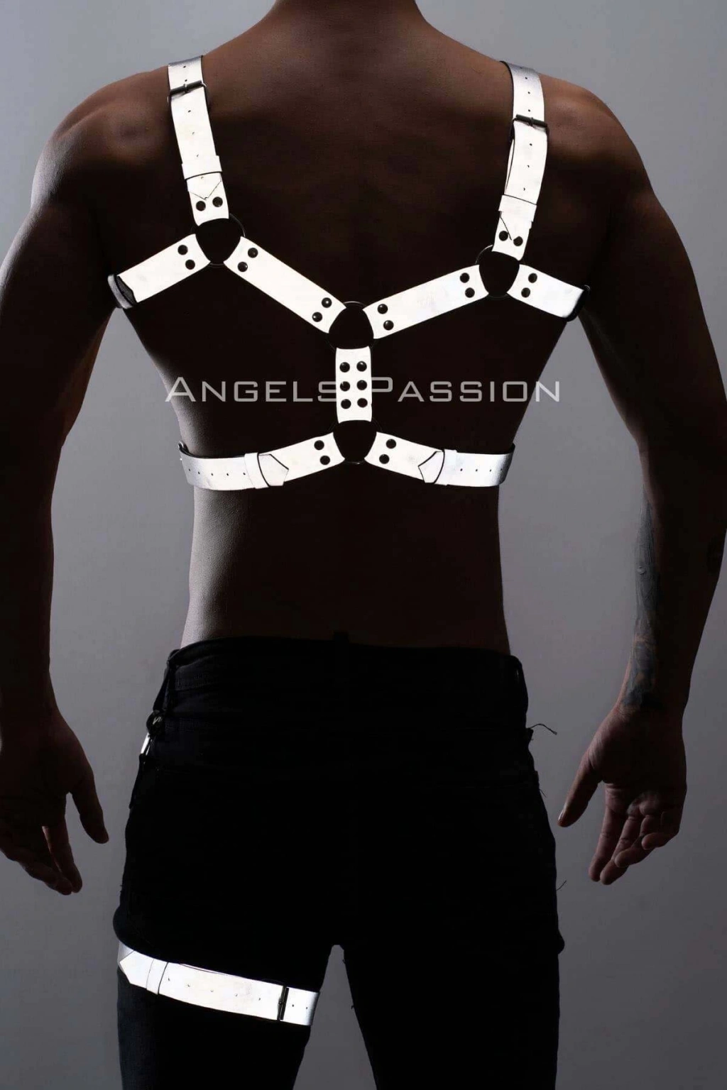 Reflektörlü - Karanlıkta Yansıyan Erkek Göğüs ve Bacak Harness Takım - APFTM199
