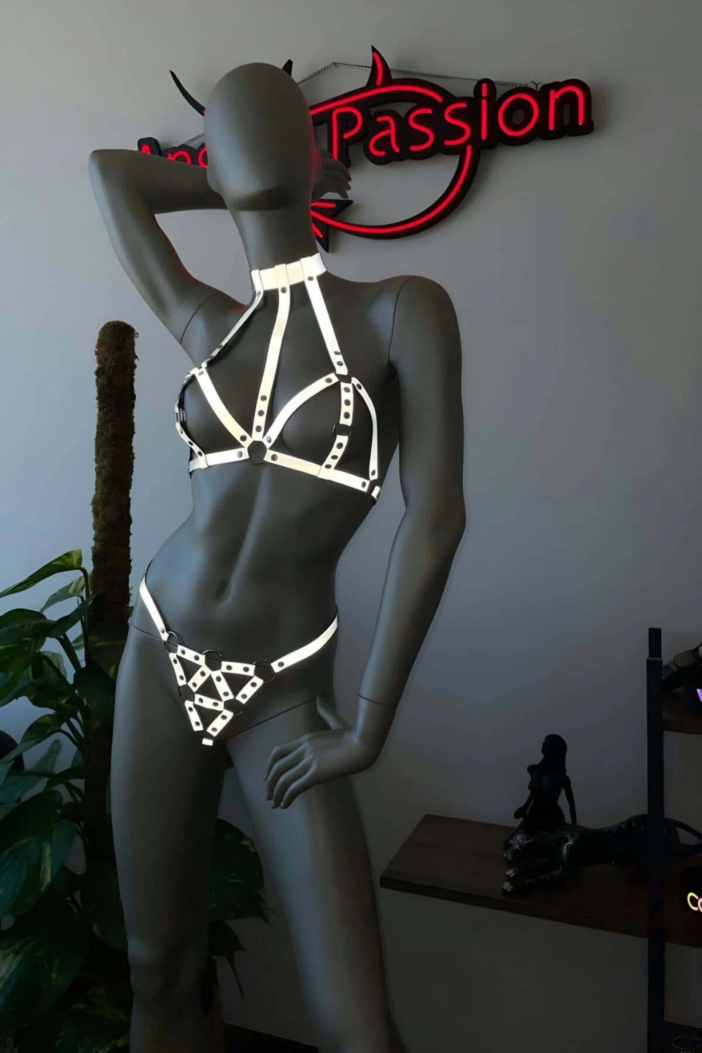 Ürün İçeriği: 2 Parça (Göğüs harness ve külot. İç çamaşırlar ve aksesuarlar dahil değildir.)