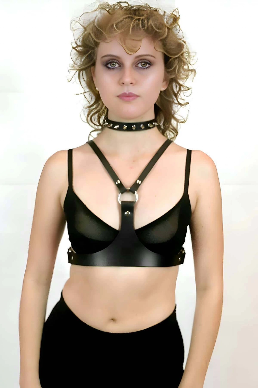 • Ürün ve paket içeriği: 1 parça (1 ad. Deri Göğüs harness , 1 ad. Çivili Choker) İç çamaşırlar dahil değildir.