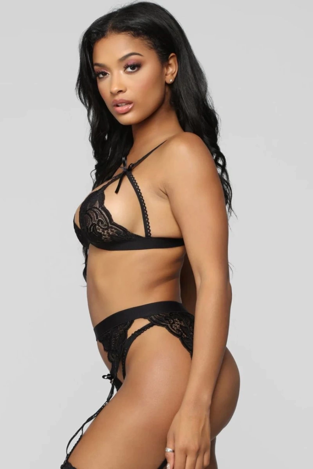 Desteksiz Dantelli Siyah Jartiyer Takım