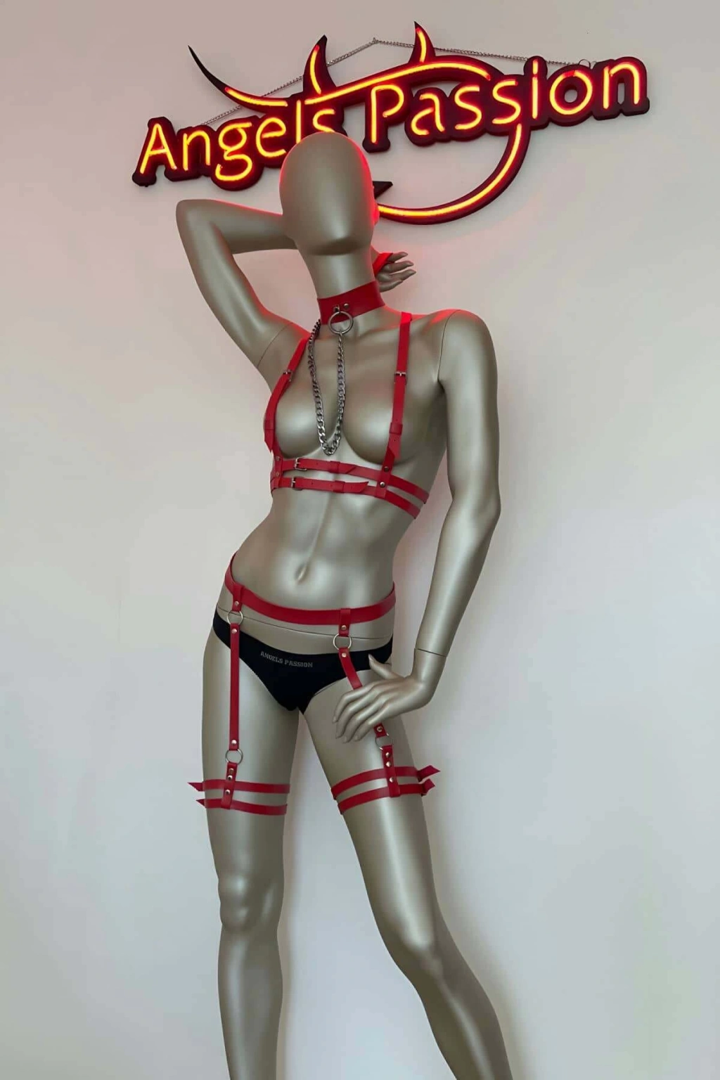 Tasma Detaylı Şık Deri Harness Jartiyer Takım