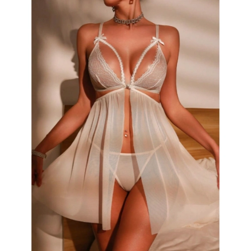 Ürün 2 parçadan oluşmaktadır. 1 adet Gecelik ve 1 adet String. Ürünün Üst Kısmı Dantelden Alt Kısmı Transparan Tül den Üretilmiştir.Sütyen Önden Kopçalıdır. Zarif ve çekici bir görünüm arayanlar için Fantezi Dantel Sütyenli Transparan Gecelik , şıklığı ve seksiliği bir arada sunuyor. İnce işçilikle hazırlanmış dantel detayları, geceliği zarif biçimde uygulanırken, şeffaf kumaşı dökülen zarif hatlarını ortaya çıkarır. Sütyen tasarımı , göğüslerinizi toparlayarak güzel bir şekil vererek, rahatlıkla giyilebilir bu gecelik, aynı zamanda etkileyici bir görünüm sunuyor. Dantel Detaylar : Göğüs kısmındaki dantel sütyen, zarif bir dokunuş ekler ve şıklığınızı vurgular. Transparan Kumaş : Cildinizin zarif şapkalarını ortaya çıkarabilen transparan kumaş, seksi bir hava katarı. Sütyen Özelliği : Göğüsleri destekleyen sütyen tasarımı, gövdesi kusursuz, sarılmış ve mükemmel bir görünüm sağlar. Konfor ve Şıklık : Hem rahat hem de seksi bir tasarım, özel gecelerin vazgeçilmezi olacak. Kullanım Önerisi : Romantik bir akşam veya özel bir gece için mükemmel bir tercih olan bu gecelik, hem kendinizi hem de partnerinizi büyütecek. Şıklığınızı ve masraflarınızı artırırken, ona bedeninize uyum sağlayacak esnek yapı ile rahatlık sunar.