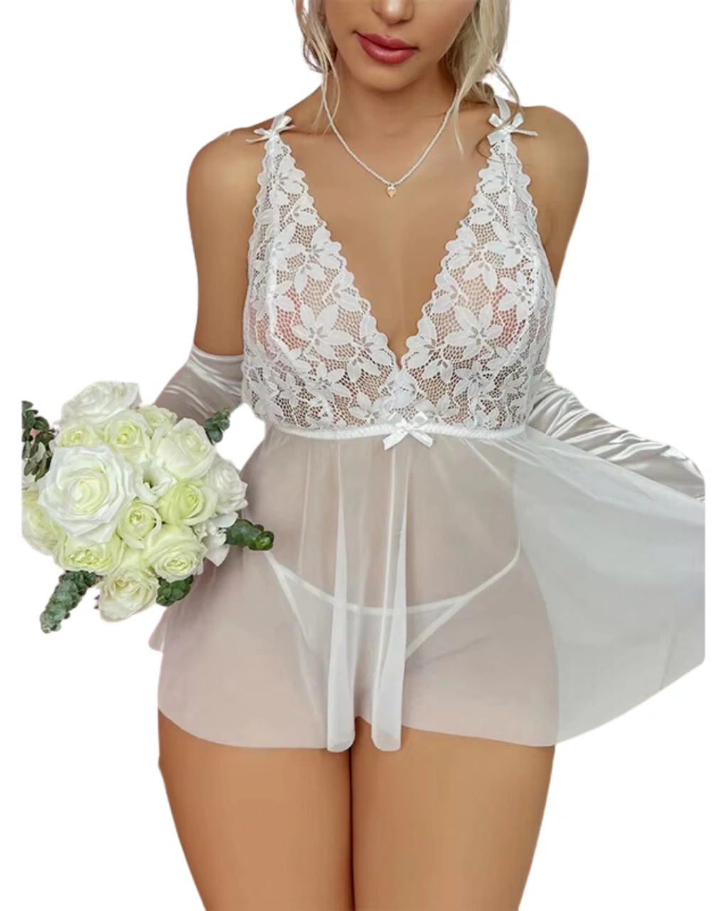 Tegan Fantezi Beyaz Dantelli Transparan Tül Etekli Seksi Elbise Gecelik TG273266