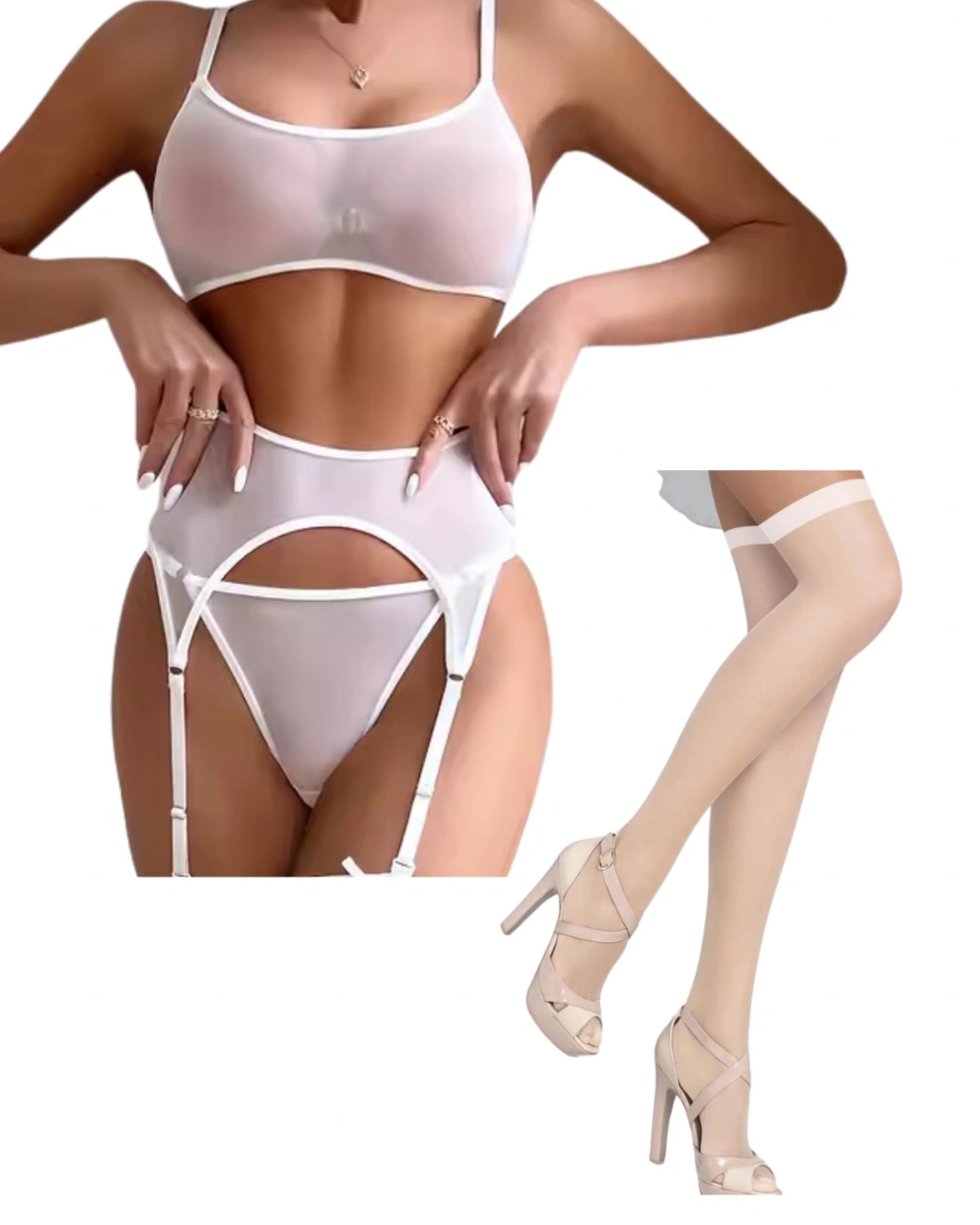 Tegan Fantezi Beyaz Transparan Tül Jartiyer Takımı TG273262