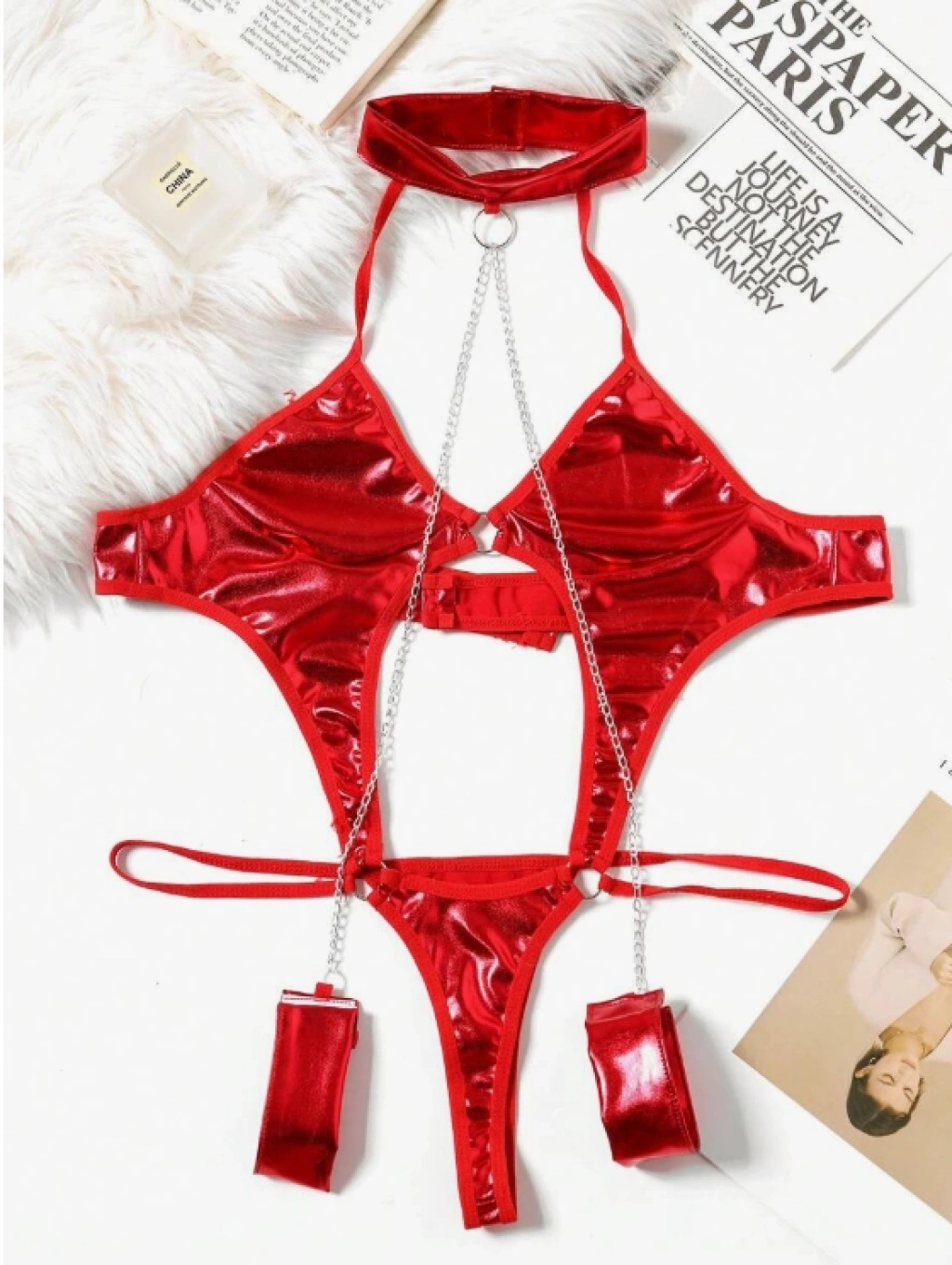 Ürün 2 parçadan oluşmaktadır. (Body, Kelepçeli Boğazlık) Fantezi Seksi Zincirli Tasmalı Kelepçeli Lame Gecelik, iddialı ve baştan çıkarıcı bir iç giyim parçasıdır. Bu gecelik, özgün tasarımıyla dikkat çeker ve özel anlarınızı daha heyecanlı hale getirmek için tasarlanmıştır. Malzeme: Lame kumaş, parlak ve dikkat çekici bir görünüm sunar. Bu malzeme vücudu nazikçe sararak çekici bir siluet oluşturur. Tasarım: Zincirli Tasmalı: Geceliğin tasmasında kullanılan zincir detayı, ürüne cesur ve fetiş bir hava katıyor. Kelepçeli: Kelepçeler, aksesuar olarak geceliğe dahil edilmiştir ve özel anlarda kullanılmak üzere tasarlanmıştır. Kullanım Alanları: Özel Anlar: Romantik ve cesur akşamlar, fantezi temalı partiler veya özel kutlamalar için mükemmel bir seçimdir. Fetiş Giyim: Kelepçe ve zincir detaylarıyla fetiş giyim tarzını sevenler için idealdir.