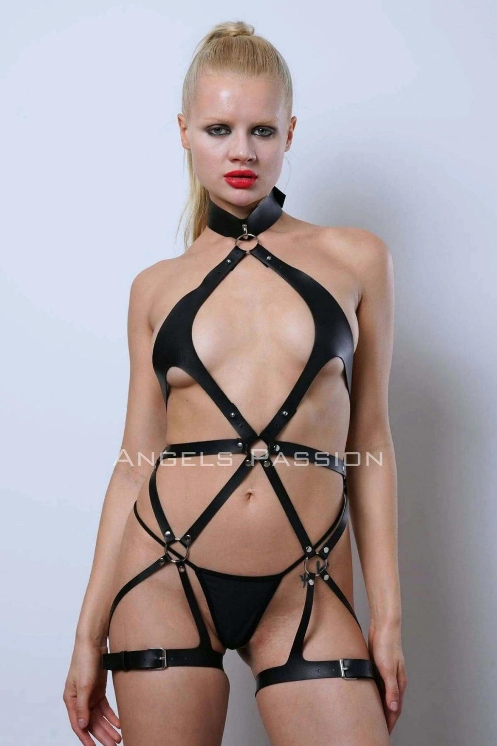 Vegan Deri Harness, Full Body Deri Harness, Erotik Deri İç Giyim - APFT1331